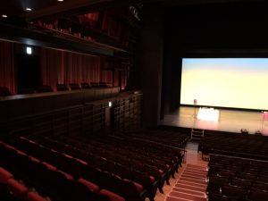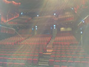 穂の国とよはし芸術劇場PLATは、ステージから客席を見ると、こんな感じなの。先のBlogでオフブロードウェイって書いちゃったけど、ブロードウェイの間違いです。訂正しました。ライオンキングの初演を観た劇場にちょっと印象が似てるような???あまりに遠い昔で記憶が曖昧だけど(’~’)